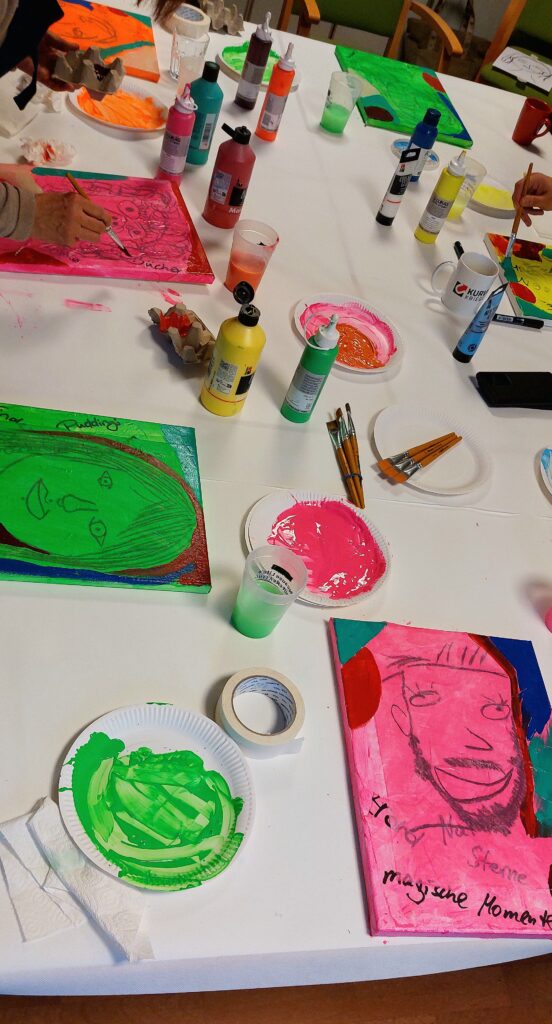 Mit diesen Fragen setzten sich die Teilnehmenden kreativ auseinander und erschufen ein Selbstportrait,